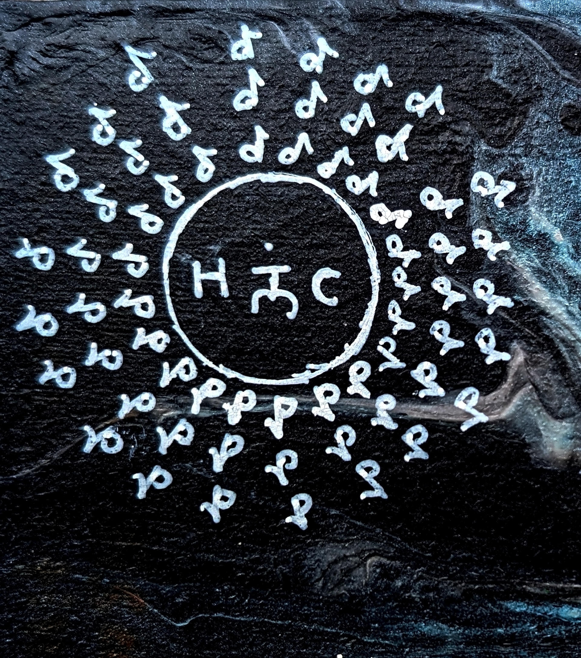I added some new symbols to my painting. The symbol in the upper left corner is one I channeled with the architect for my sandalfon painting. It is called harmonic convergence. It represents the harmony found within the universe and it's creation. There is an order to everything in the universe, including the universe itself. The circle represents the first seven elements found in the periodic table. These first seven elements also correspond to the first seven notes of the musical scale. All other elements are octaves of these seven notes. Hydrogen is the first element in the table and represent the first note on the musical scale (C). These are centered in the circle with the root chakra. The root chakra is the foundation our energy body. It can also be thought of as the first note of in this energetic symphony. The root chakra also corresponds to the C note. This is definitely not a coincidence. It shows the order inherent on a macroscopic and subatomic level. The musical notes coming off of the circle represent the octaves that are created as the cycle from C to C as the cycle is repeated harmonically through the notes on the musical scale and in the periodic table. This harmonic cycle is played out infinitely within all of creation and in the universe. As above so below.