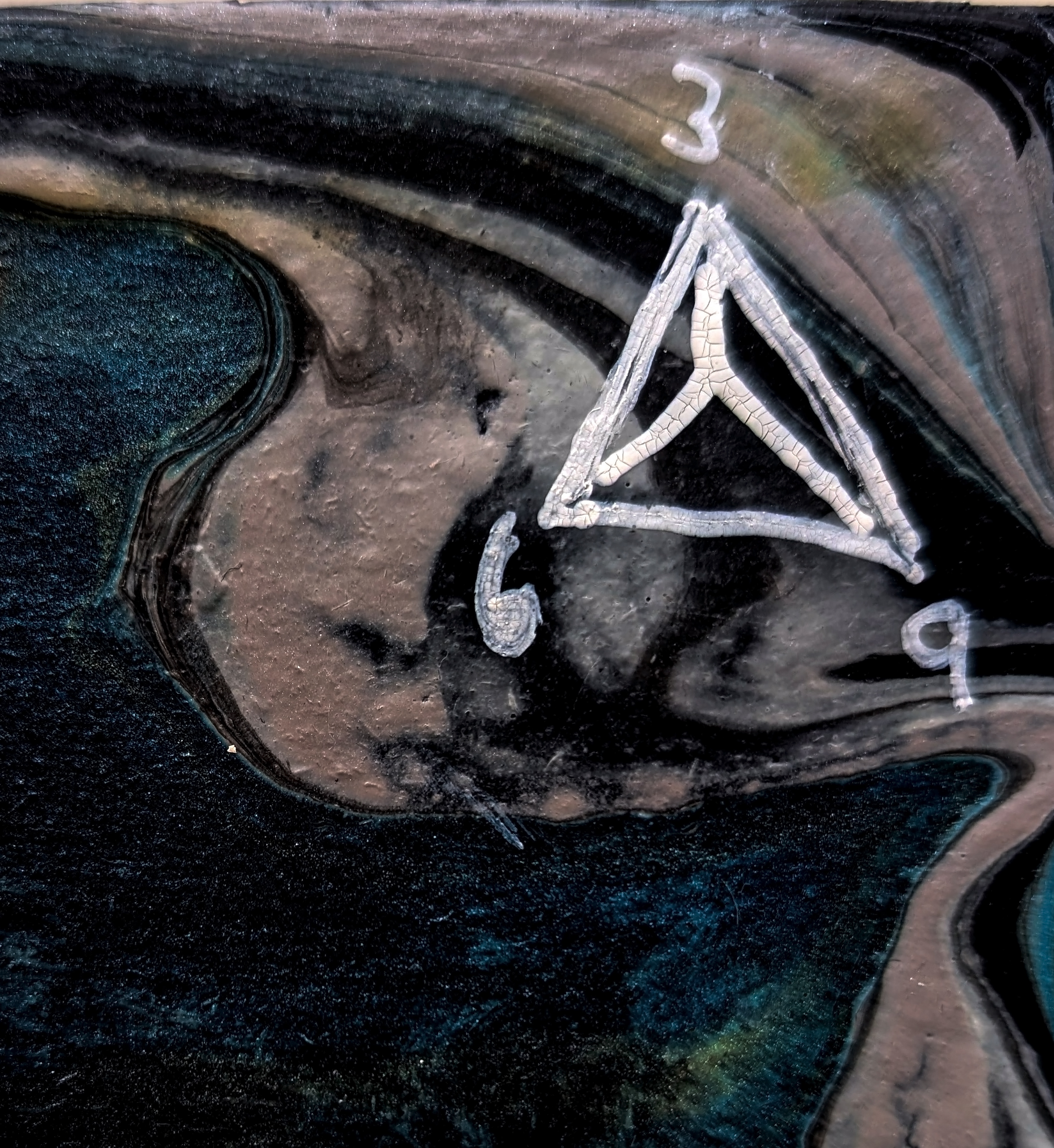 The two symbols ( right and left inside the stars) represent the masculine and feminine energy polarities That create balance within our universe. The one on the left is Taurus ( masculine energy) and the symbol on the left represents venus ( feminine energy). Taurus is the framework of the universe and Venus breathes life into this lattice of energy. The symbol on the right is a tetrahedron ( fire element) with the numbers 3, 6 and 9 surrounding it. Three is the union of the the first 3 circles in the flower of life. This creates the first triangle and the first 3 dimensions needed to hold space for creation. 3 is spark that lights the fire. This spark needs containment to grow without creating destruction. The number 6 represents this containment. This spiral of containment is the hexagon that closes the first loop. This is the womb of geometry where form becomes the field. There are also 6 directions in space ( up and down, right and left, forward and back). 9 is completion. It is the return to stillness the circle coming back to it's starting point. The number nine is the breath returning to itself. 3 is the out breath, nine is the in breath. This creates the toroidal field that surrounds the earth and all of creation. 369 is the cycle of creation, integration and rebirth. All of creation follows this cycle. Just like the musical notes in a scale it builds a builds a beautiful symphony that returns to it's original note and then creates a new song.