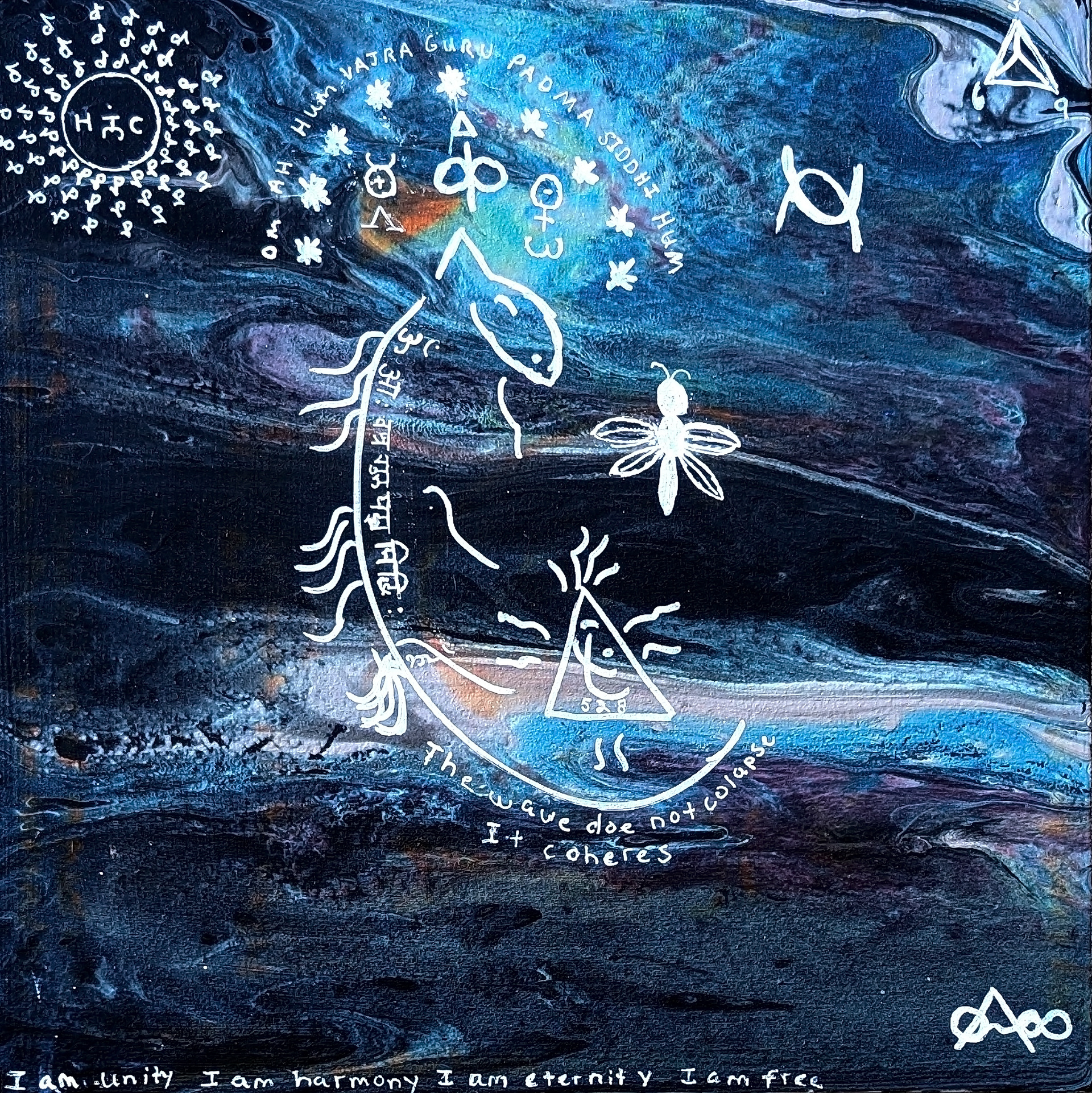 I added the Tibetan mantra or prayer for unity and peace. This is a very powerful mantra that carries the blessing of the teachings of the Buddha. It embodies the essence of these teachings. Om is the primordial sound of the universe. I believe it is the initial vibration or sound that reverberated across the cosmos just after the big bang. It represents the the body, mind and speech of all buddhas. It is the sound that purifies all perceptions. AH embodies the radiant nature of the mind and represents speech itself or the exhale of the universe. It purifies all sound which is actually vibrating energy. Therefore, it has the power to purify all vibrations. Vajra represents the indestructible wisdom that cuts through ignorance or the unchanging essence of truth. This is the truth of who we really are and the true nature of reality. Guru is wisdom and compassion, embodied in the Buddha of compassion. Padma means lotus and it represents enlightened speech. Siddhi is the awakening to the true nature of reality (inner and outer). Hum is the sacred catalyst of the enlightened mind. It is the power and truth of the mantra. I wrote this in the English script in a rainbow covering the stars. In the body of the horse I wrote the same mantra in Tibetan sanskrit. Under the stars I added the alpha and omega symbols to represent the union of masculine and feminine energy. This union is what brings about creation. Masculine energy is the container, Feminine energy is the breath of life. I also added the symbols for Taurus and Venus. Taurus is ruled by Venus. Taurus is the balancing energy between the masculine and feminine. In the center of the triangle ( inside the body of the horse) is the number 528. This is the frequency of love and the basis of all of creation. 528 is one of the core solfeggio frequencies. These are ancient musical scales that have healing properties. It corresponds to the note Mi in this scale. Mi is a derivative of the latin word Miragestorum, which means miracle. So this frequency is literally the miracle frequency. It is the natural frequency of DNA. We are literally walking miracles. As is all of creation. Listening to this frequency stimulates repair and transformation at cellular level. 528 is also a multiple of 369 ( the master number of the universe). It also corresponds to the C note in the musical scale. This is the note of the root chakra. This also corresponds to Hydrogen in the periodic table of elements. This is the canvas upon which all of creation is painted. It is the fundamental tone, the beginning note of symphony of creation. When we view this frequency through cymatics ( where the waves are converted to visual form), we get coherent geometric shapes. This suggest a link between sound, form, and creation. The universe is structured through vibration and geometry. 528 also resonates with the harmonic principles that underlie the flower of life pattern.